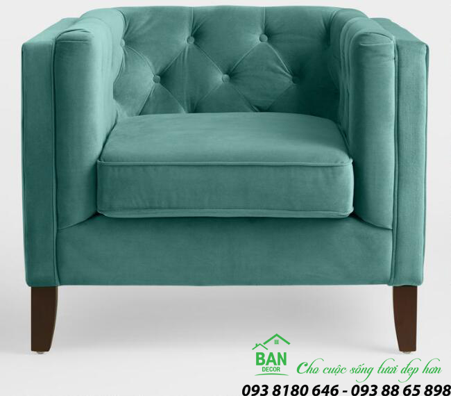 Màu sắc sang trọng, đặc biệt chi tiết ở hai cánh tay và sau lưng, cánh tay dày, chân bằng gỗ cứng và được bọc vải Nhung lộng lẫy trong một màu sắc xanh tuyệt vời.