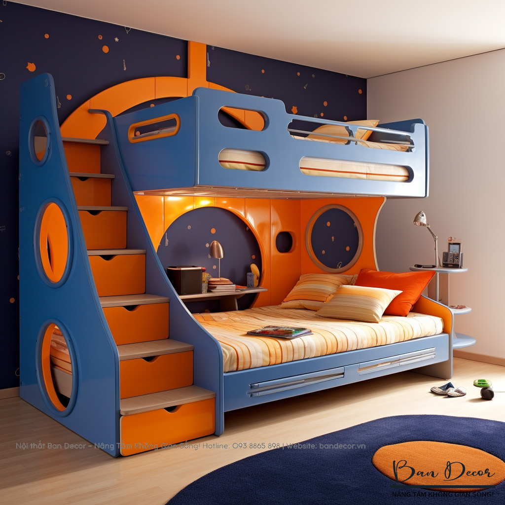 Giường 2 tầng trẻ em giúp tiết kiệm diện tích phòng ngủ, đồng thời tạo ra một không gian vui chơi và giải trí cho trẻ em. Giường 2 tầng thường được sử dụng trong những gia đình có nhiều trẻ em, hoặc trong các căn hộ nhỏ, nơi diện tích phòng ngủ hạn chế.