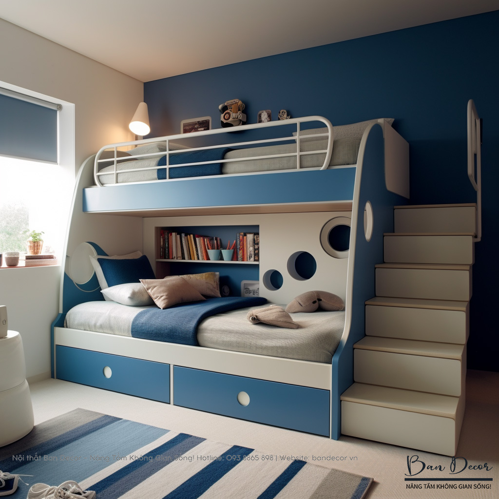 Giường 2 tầng trẻ em giúp tiết kiệm diện tích phòng ngủ, đồng thời tạo ra một không gian vui chơi và giải trí cho trẻ em. Giường 2 tầng thường được sử dụng trong những gia đình có nhiều trẻ em, hoặc trong các căn hộ nhỏ, nơi diện tích phòng ngủ hạn chế.
