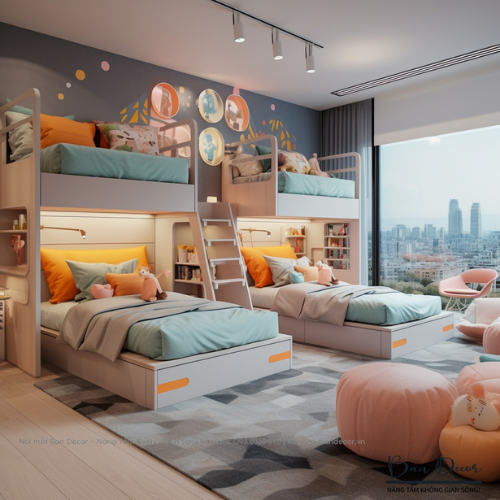 Giường 2 tầng trẻ em giúp tiết kiệm diện tích phòng ngủ, đồng thời tạo ra một không gian vui chơi và giải trí cho trẻ em. Giường 2 tầng thường được sử dụng trong những gia đình có nhiều trẻ em, hoặc trong các căn hộ nhỏ, nơi diện tích phòng ngủ hạn chế.