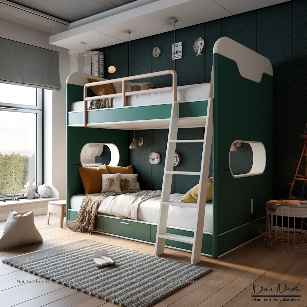 Giường 2 tầng trẻ em giúp tiết kiệm diện tích phòng ngủ, đồng thời tạo ra một không gian vui chơi và giải trí cho trẻ em. Giường 2 tầng thường được sử dụng trong những gia đình có nhiều trẻ em, hoặc trong các căn hộ nhỏ, nơi diện tích phòng ngủ hạn chế.