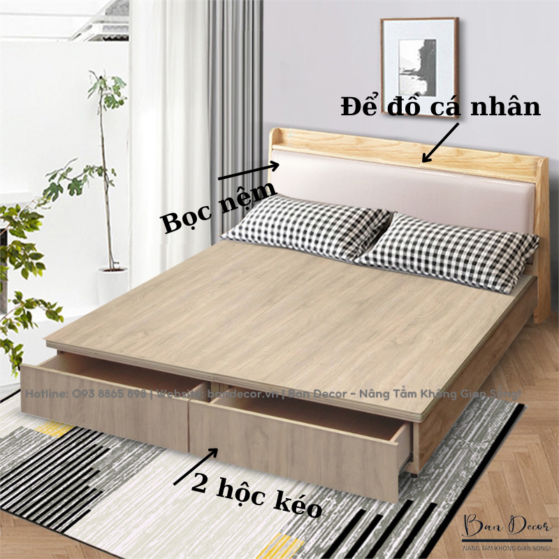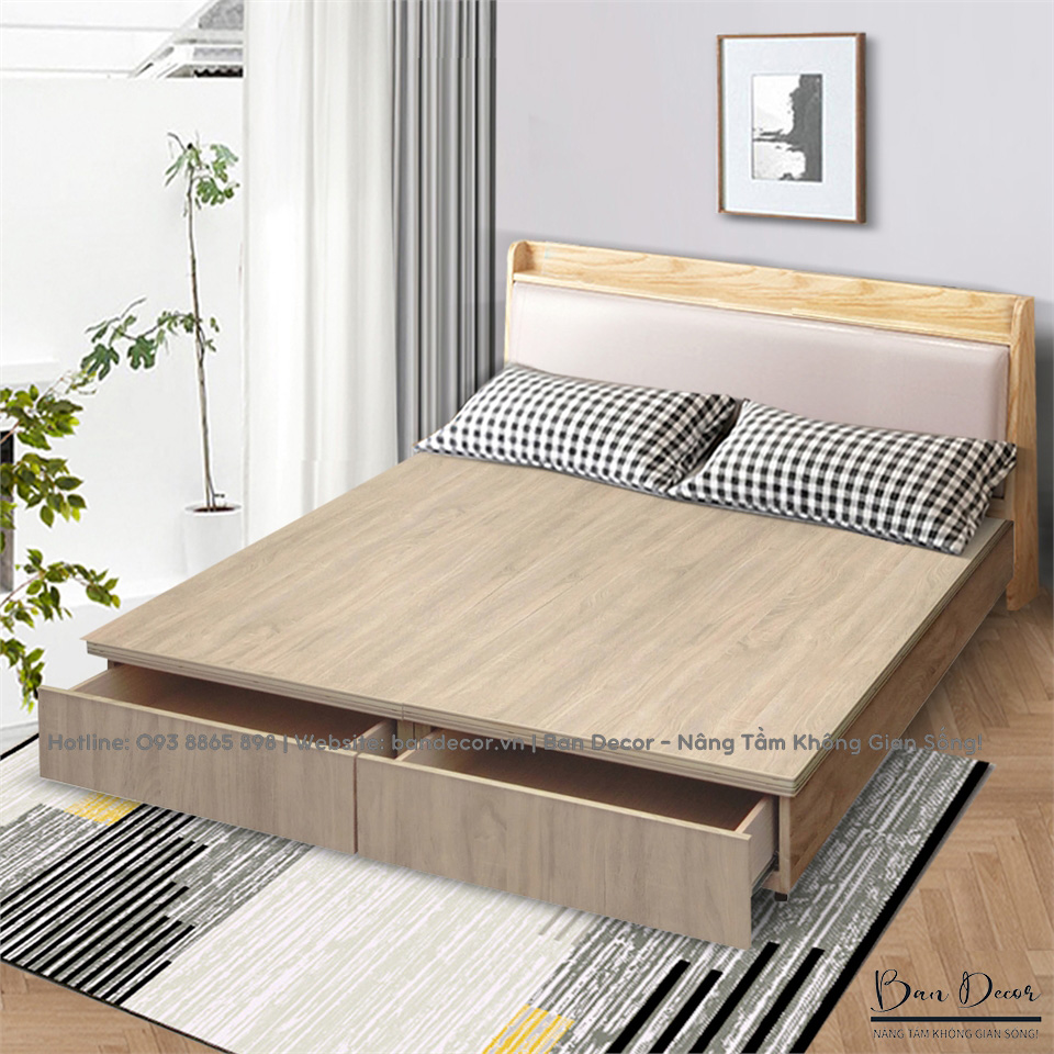 Một trong những yếu tố quan trọng khi chọn mua giường ngủ có ngăn kéo là vật liệu. Gỗ công nghiệp phủ Melamine là một lựa chọn tuyệt vời cho bề mặt giường. Với khả năng chống trầy xước và dễ dàng vệ sinh, gỗ công nghiệp phủ Melamine mang lại sự bền bỉ và đẹp mắt cho sản phẩm. Bạn có thể yên tâm rằng giường của bạn sẽ luôn mới và sang trọng trong suốt thời gian dài.