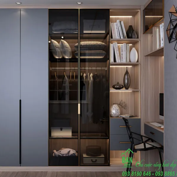 KT: 2.2+1.2x2.4m. Gỗ MFC phủ Melamine chống trầy xước.