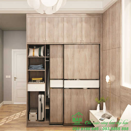 - Giá báo theo tiêu chuẩn Tủ quần áo thông thường, chiều sâu 600mm (cách tính m2: Rộng x Cao).