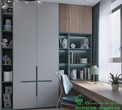 KT: 2.5x0.6x2.4m, gỗ MDF phủ Melamine chống trầy xước bề mặt.