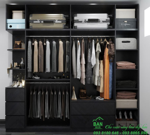 KT: 2.5x0.6x2.4m, gỗ MDF phủ Melamine chống trầy xước bề mặt.
