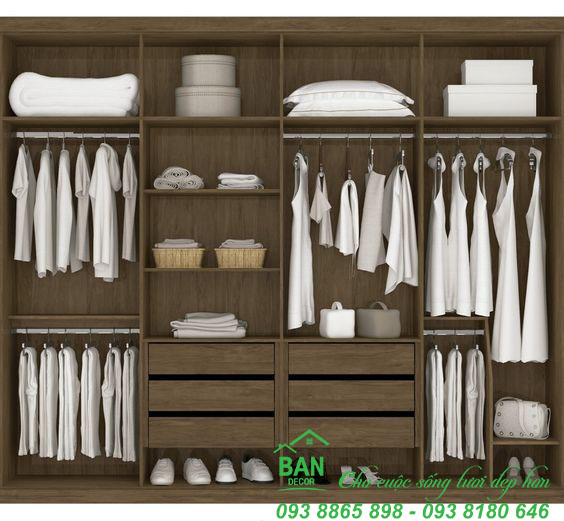 KT: 3.1x2.4x0.6m, gỗ MDF phủ Melamine chống trầy xước bề mặt.