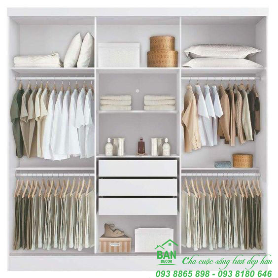 KT: 3.1x2.4x0.6m, gỗ MDF phủ Melamine chống trầy xước bề mặt.