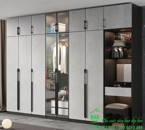 KT: 2.1x2.4x0.6m, gỗ MDF phủ Melamine chống trầy xước bề mặt.