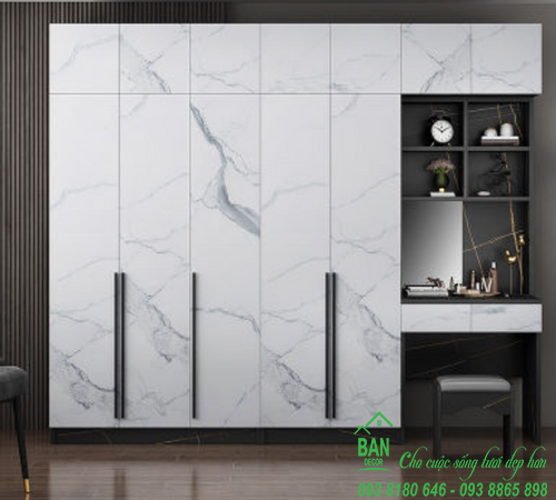 KT: 2.0x2.4m, gỗ MDF phủ Melamine chống trầy xước.