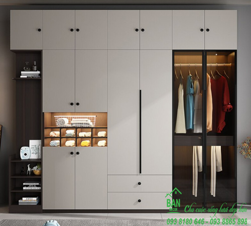 KT: 2.4x2.2m, gỗ MDF phủ Melamine chống trầy xước.
