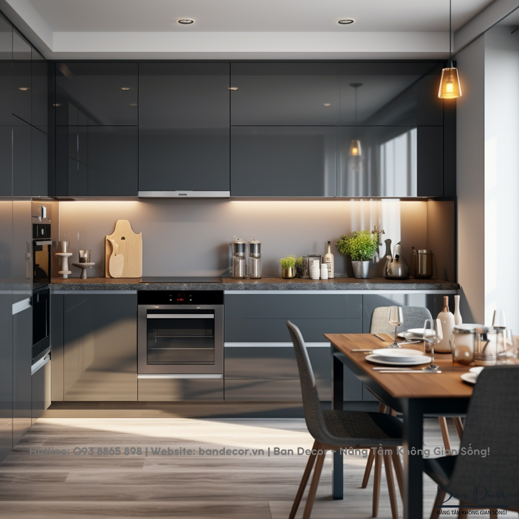 Tủ dưới: 4.350.000đ/m dài, Acrylic no line.