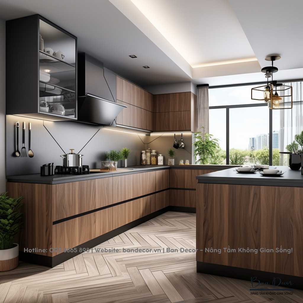 TỦ BẾP ĐẸP THIẾT KẾ CHỮ L.