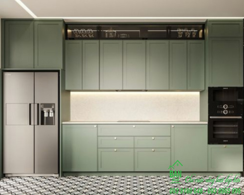 Giá: Tủ trên: 2.900.000đ/m dài, Tủ dưới: 3.100.000đ/mdài.