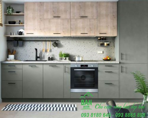 Giá: Tủ trên: 2.700.000đ/m dài, Tủ dưới: 2.900.000đ/mdài.