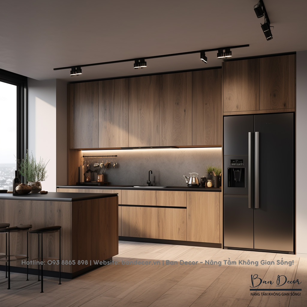 Giá: Tủ trên: 2.700.000đ/m dài, Tủ dưới: 2.900.000đ/m dài.