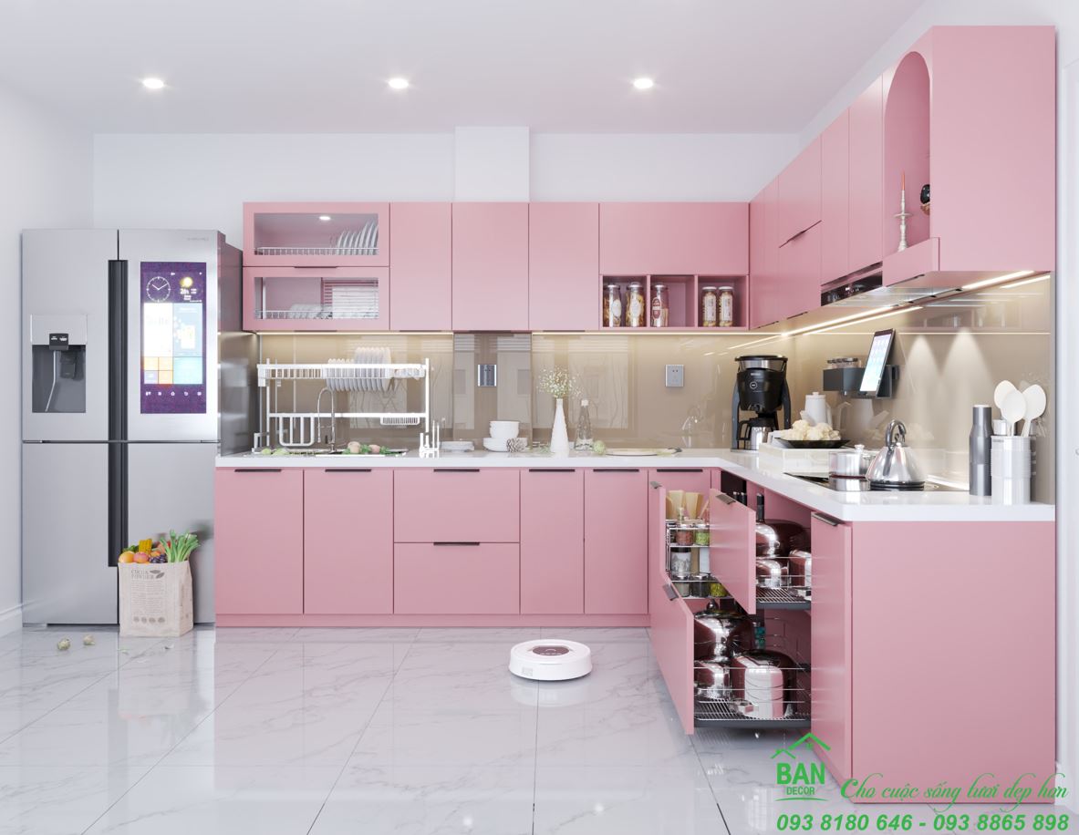 Tủ dưới: 4.200.000đ/m dài, cánh phủ Acrylic bóng gương.