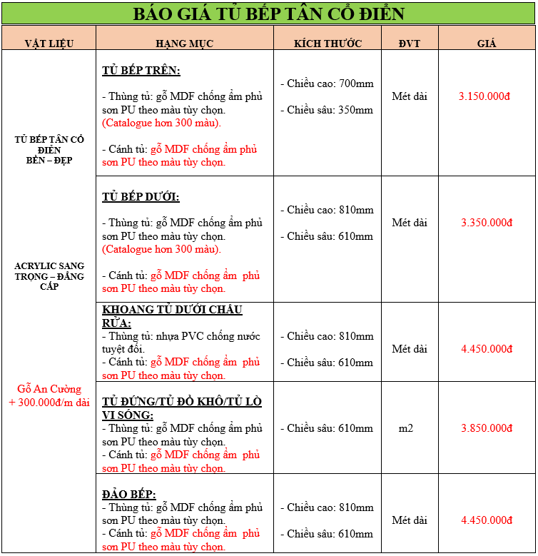 TỦ BẾP TÂN CỔ ĐIỂN CĐ 46