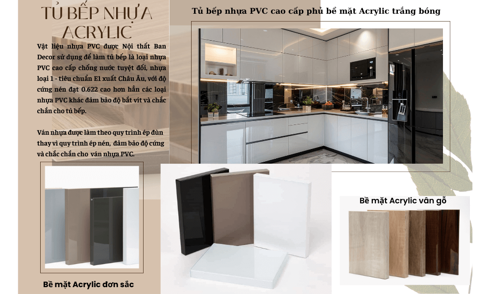 Vật liệu làm tủ bếp nhựa Acrylic được Nội thất Ban Decor sử dụng: