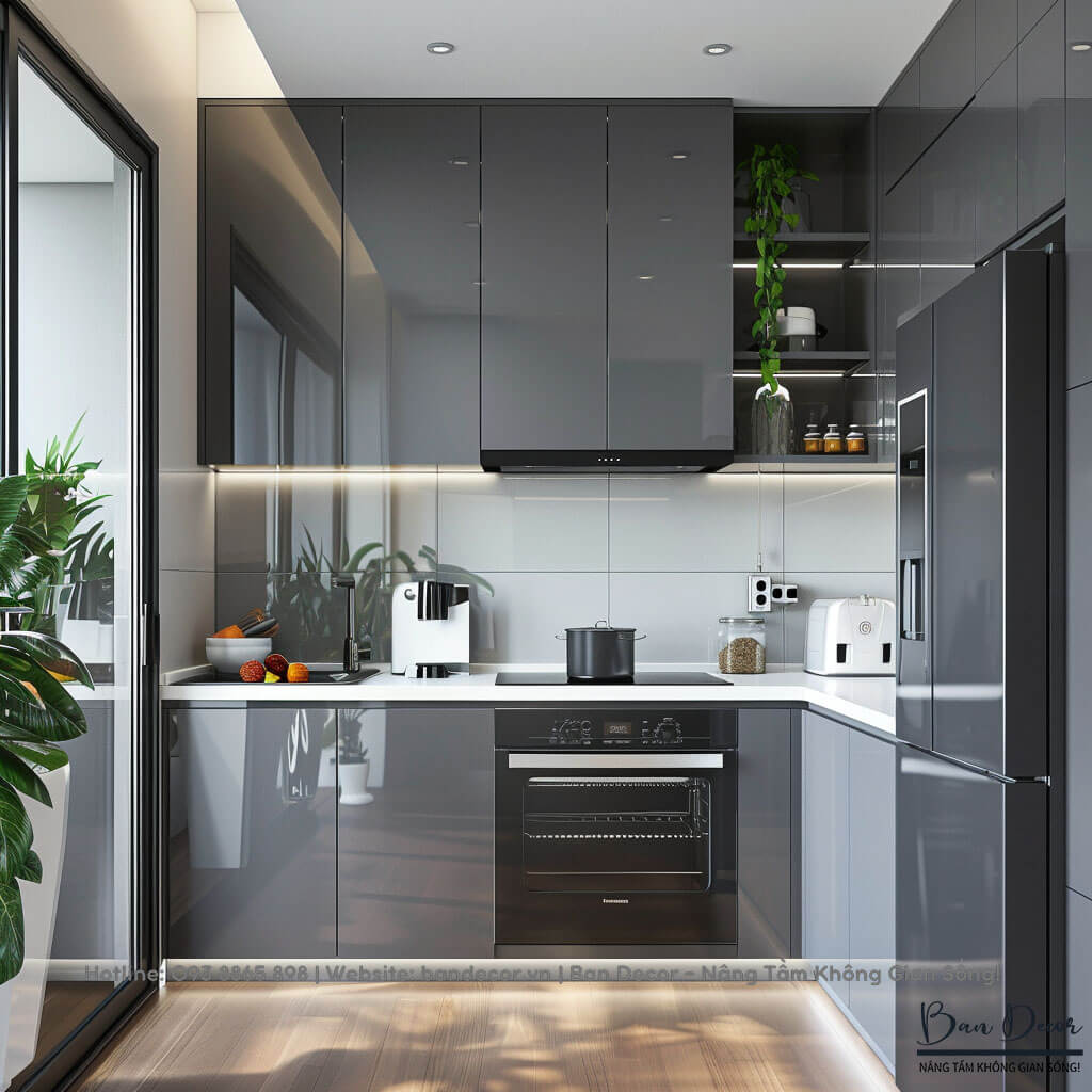 TỦ BẾP NHỰA ACRYLIC - VẺ ĐẸP HIỆN ĐẠI VÀ SANG TRỌNG.  Chất liệu: Thùng tủ: nhựa PVC chống nước tuyệt đối dày18mm, hậu dày 8mm. Mặt cánh: nhựa PVC chống nước tuyệt đối dày 18mm phủ Acrylic/Melamine.  Độ bền: 15 - 25 năm Xưởng sản xuất nội thất hơn 20 năm kinh nghiệm | Tay nghề thợ hơn 10 năm knghiệm Thiết kế 3D miễn phí Xem thêm Mẫu thiết kế Tủ bếp: bandecor.vn/nha-bep/tu-bep/tu-bep-acrylic/ bandecor.vn/tu-bep-nhua-cao-cap/
