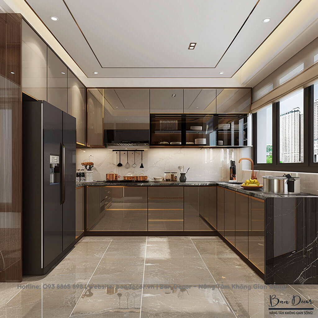 TỦ BẾP NHỰA CAO CẤP - BỀN ĐẸP THEO THỜI GIAN.  Chất liệu: Thùng tủ: nhựa đặc chống nước tuyệt đối dày18mm, hậu dày 8mm phủ PVC/Melamine/keo bóng/sơn PU. Mặt cánh: nhựa đặc chống nước tuyệt đối dày 18mm phủ Acrylic/Melamine/PVC.  Độ bền: 20 năm - 30 năm Xưởng sản xuất nội thất hơn 20 năm kinh nghiệm. Thiết kế 3D miễn phí Xem thêm Mẫu thiết kế Tủ bếp: bandecor.vn/tu-bep-nhua-cao-cap/ bandecor.vn/tu-bep-nhua-acrylic/