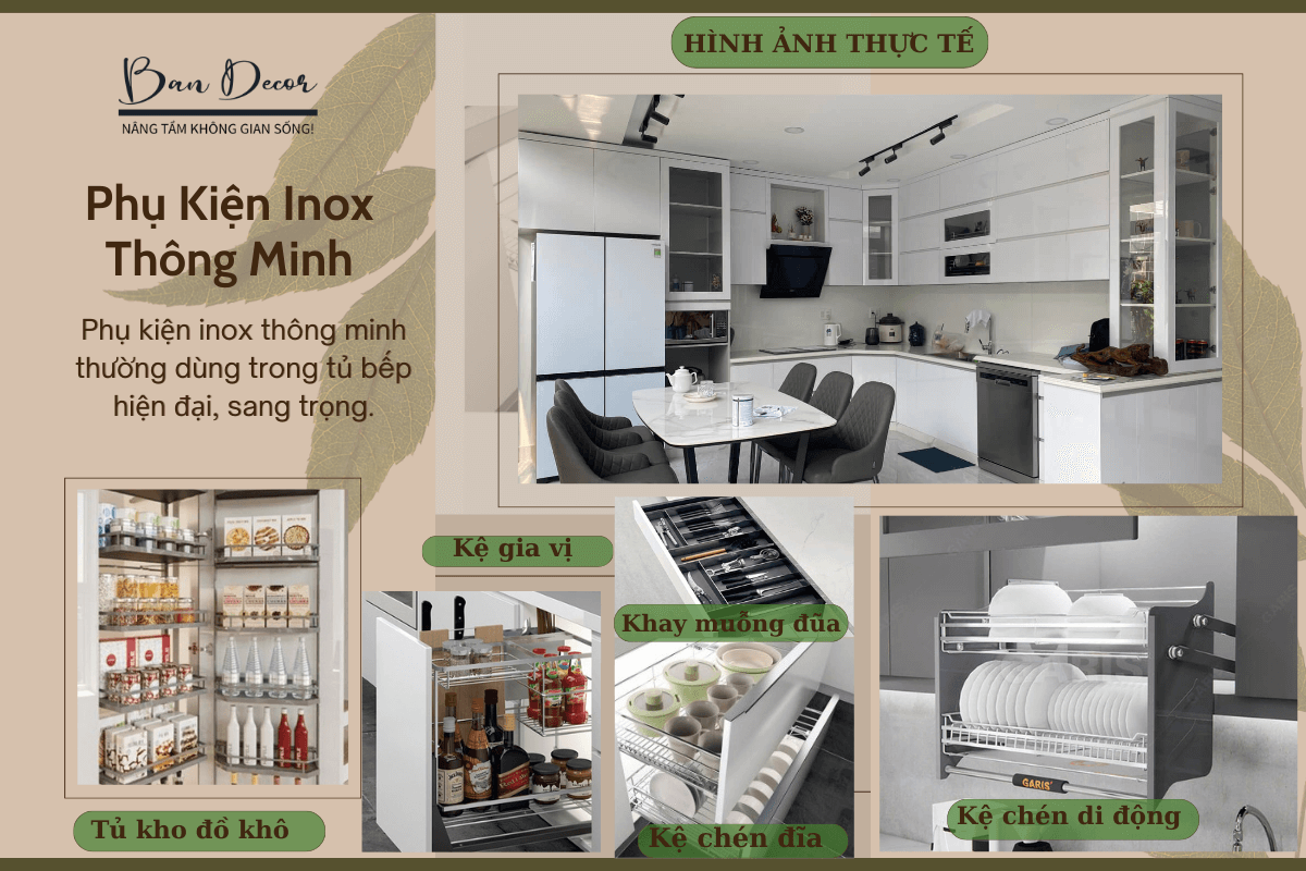 - Tối ưu hóa tiện ích: Nội thất Ban Decor cung cấp nhiều tùy chọn thiết kế với các tính năng thông minh, như: kệ kéo, ngăn tủ tiện dụng, hệ thống giá đỡ giúp sắp xếp đồ dùng gọn gàng, ngăn nắp.